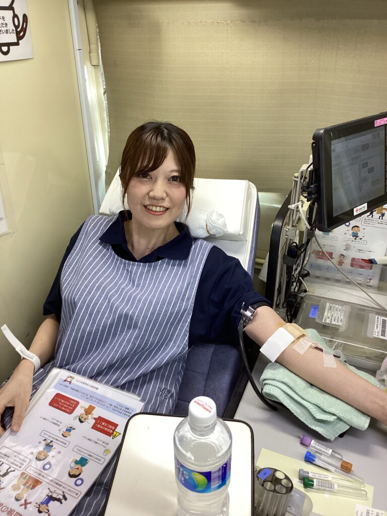 地域に貢献する取り組みの一環として、職員たちが自主的に献血へ参加。笑顔と温かい気持ちに包まれた一日となりました。